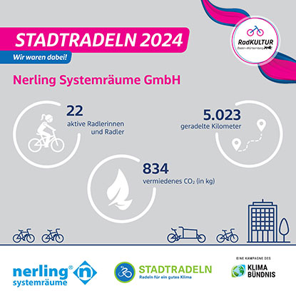 Die Firma Nerling ist beim diesjährigen STADTRADELN wieder mit einem starken Team vertreten. In der Zeit vom 23. Juni 2024 – 13. Juli 2024 treten wir gemeinsam in die Pedale. Darüber freut sich nicht nur das Klima, auch die eigene Gesundheit profitiert.