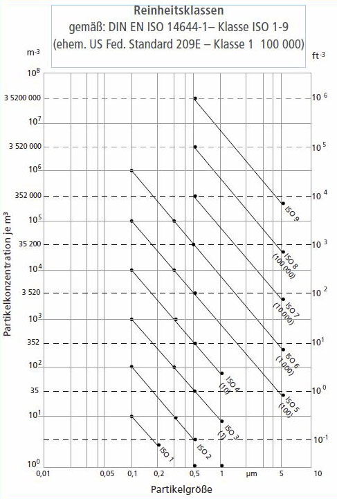 | Reinraum | Partikelgröße in μm | Sauberraum | |||||